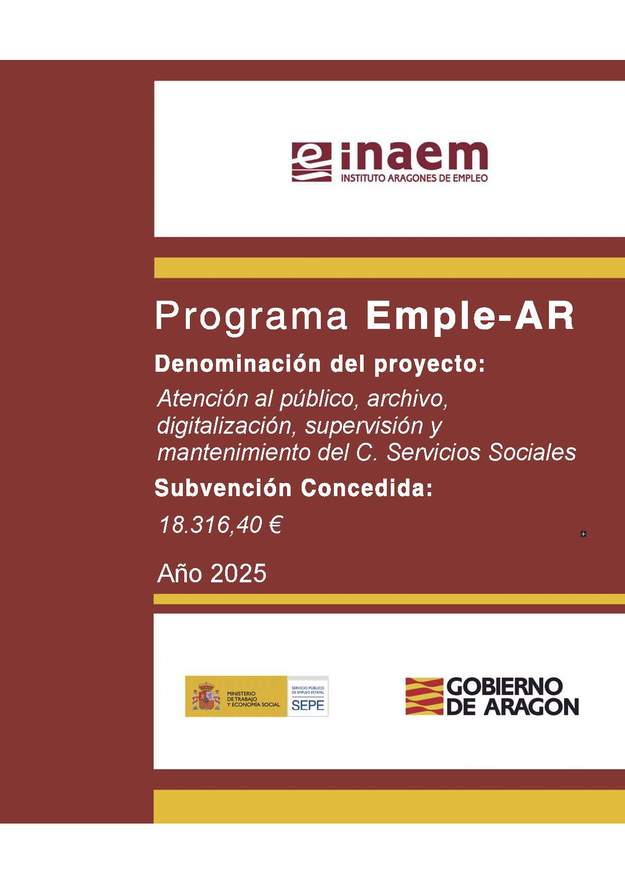 Para la puesta en práctica de este proyecto se ha recibido una subvención del INAEM por importe de 18.316,40 para una inversión total de 20.133,25 euros.